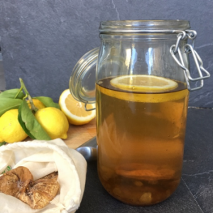 Mettre dans le pot Le Parfait, vos grains de Kéfir, le sucre, la rondelle de citron, la figue. Mettre dans un endroit à l’abri de la lumière et à température ambiante. J’ai mis le tout dans un placard en me mettant un rappel sur mon téléphone.