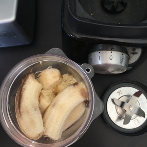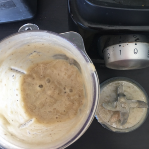 Mixer les bananes pour obtenir une purée liquide , ajouter les oeufs la purée d’amandes ou de pistaches